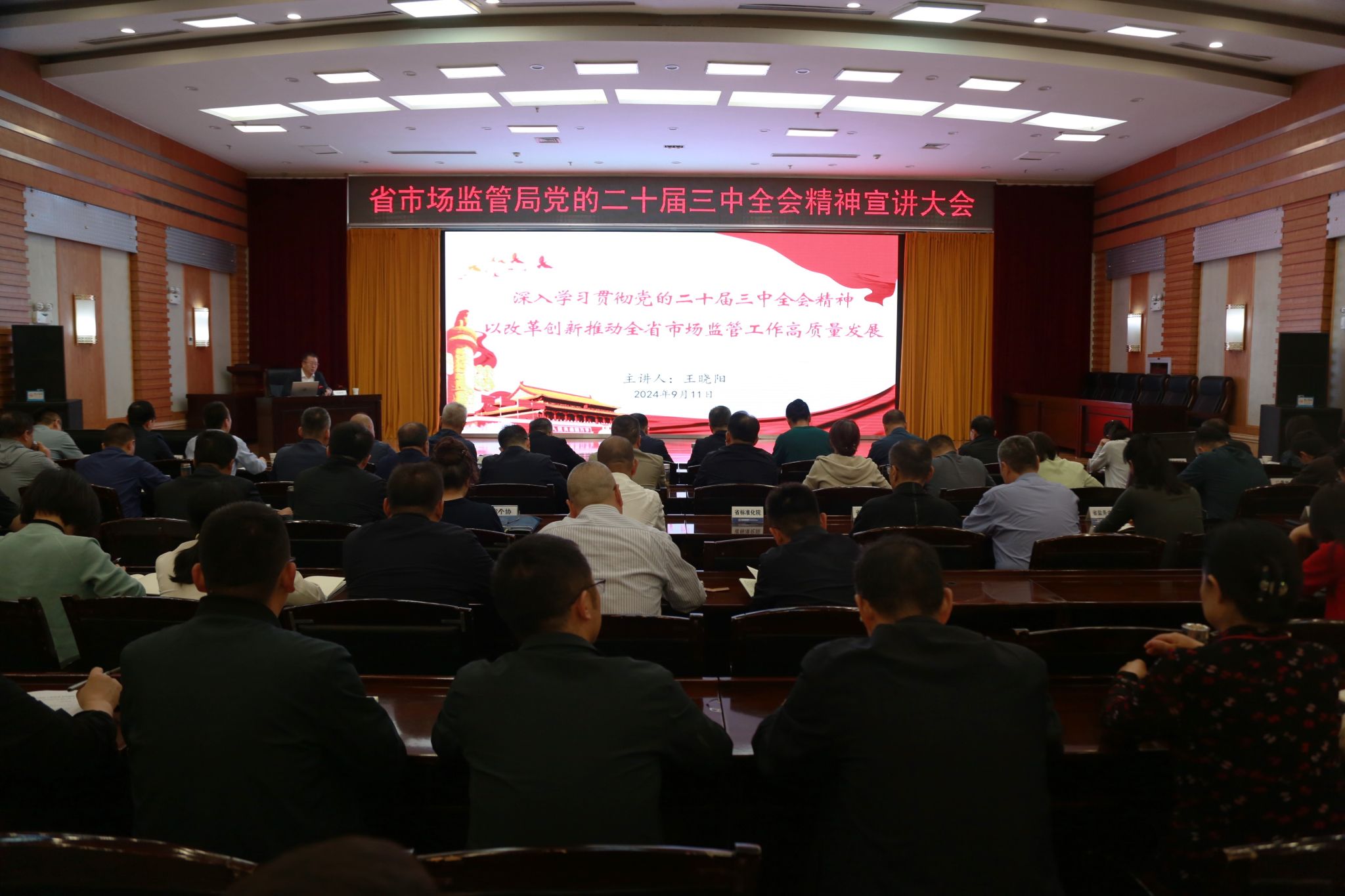 9月11日,省市场监管局召开党的二十届三中全会精神宣讲会,省局党组书记、局长王晓阳作了题为《深入学习贯彻党的二十届三中全会精神以改革创新推动全省市场监管工作高质量发展》的专题宣讲。