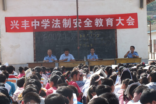 为进一步深化中学生法制教育工作,增强学生法治观念,加强和谐平安校园建设,兴丰司法所与乡综治办、乡教委、兴丰派出所等部门联合,于6月16日下午在兴丰乡兴丰中学举办安全与法制教育报告会。