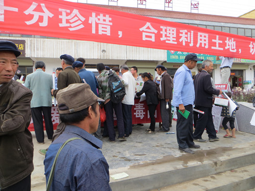 活动通过现场咨询、发放挂画、资料、广播宣传等形式,向群众宣传了《土地管理法》,通过看警示教育图片等形式,宣传了毒品对个人、对家庭、对社会的严重危害,耐心接待群众咨询,热情地向群众讲解如何集约利用土地,同时倡议广大群众争做禁毒宣传员,把禁毒知识宣传给身边的每一个人,用通俗易懂的形式告诫辖区群众要“珍爱生命 远离毒品”。活动现场气氛活跃,吸引了众多群众对禁毒工作的大力支持,此次活动共解答群众咨询70余次,发放宣传材料300余份。