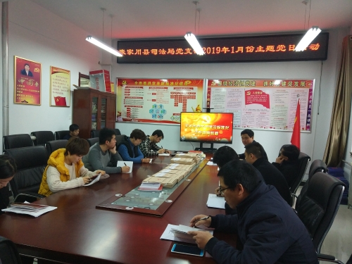 按照张家川县委组织部1月份开展“两学一做”学习教育暨主题党日活动安排部署,1月3日,张家川县司法局党支部召开了支委会议专题研究了1月份“主题党日”活动,确定了主题党日活动主题。1月4日,张家川县司法局党支部开展了1月份“两学一做”学习教育暨主题党日活动:一是学习习近平新时代中国特色社会主义思想。认真学习了习近平总书记在庆祝改革开放40周年大会上的讲话、中央经济工作会议精神、中央农村工作会议精神、国家主席习近平二〇一九年新年贺词。二是学习党章党规和县委相关文件。组织全体党员对《中国共产党章程》第六章党的干部部分进行集体诵读,诵读结束后由党支部书记对第六章内容进行解读,进一步深化了党员对党章的认识,做到了自觉学习党章、尊崇党章、维护党章。认真学习了中共张家川县委组织部转发《关于认真学习贯彻习近平总书记重要指示精神广泛开展向黄群、宋月才、姜开斌同志为代表的抗洪抢险英雄群体和王继才同志学习的通知》的通知,通过学习进一步坚定了广大党员干部的政治信仰,坚定了“四个自信”,大家纷纷表示要立足本职岗位,不务虚功、干在实处,主动担责、全力尽责。三是观看视频教程。集中观看了《天水市党支部建设标准化工作视频教程》中第三辑、第四辑,通过观看学习掌握了党支部组织生活会、谈心谈话、民主评议党员和党支部书记“双述双评”工作规范和工作流程,为后续工作开展打下了良好的基础。四是开展民主议事。商议2018年度局党支部书记“双述双评”工作准备事宜,提前进行筹划安排,确保活动扎实开展。五是开展法律志愿者服务。结合近期精准扶贫工作实际,组织党员干部深入帮扶村入户开展法律志愿者服务活动,为人民群众提供生产生活中急需的各类法律服务。通过此次主题党日活动,进一步增强了全体党员的宗旨意识,充分发挥了党员的先锋模范带头作用,取得了良好的效果。活动结束时,全体党员按时足额缴纳了1月份党费。 (马国义)