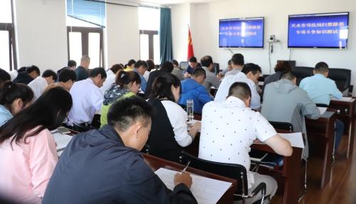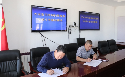 为扎实推动扫黑除恶专项斗争工作深入开展,使广大干部职工充分认识扫黑除恶专项斗争决策部署的重大意义,提高干部职工对扫黑除恶专项斗争相关知识的知晓率,在全局营造人人参与扫黑除恶、维护社会和谐稳定的浓厚氛围。6月3日,天水市司法局组织开展了扫黑除恶专项斗争知识测试,局机关、市公证处、忠信律师事务所干部职工70多人参加了测试。