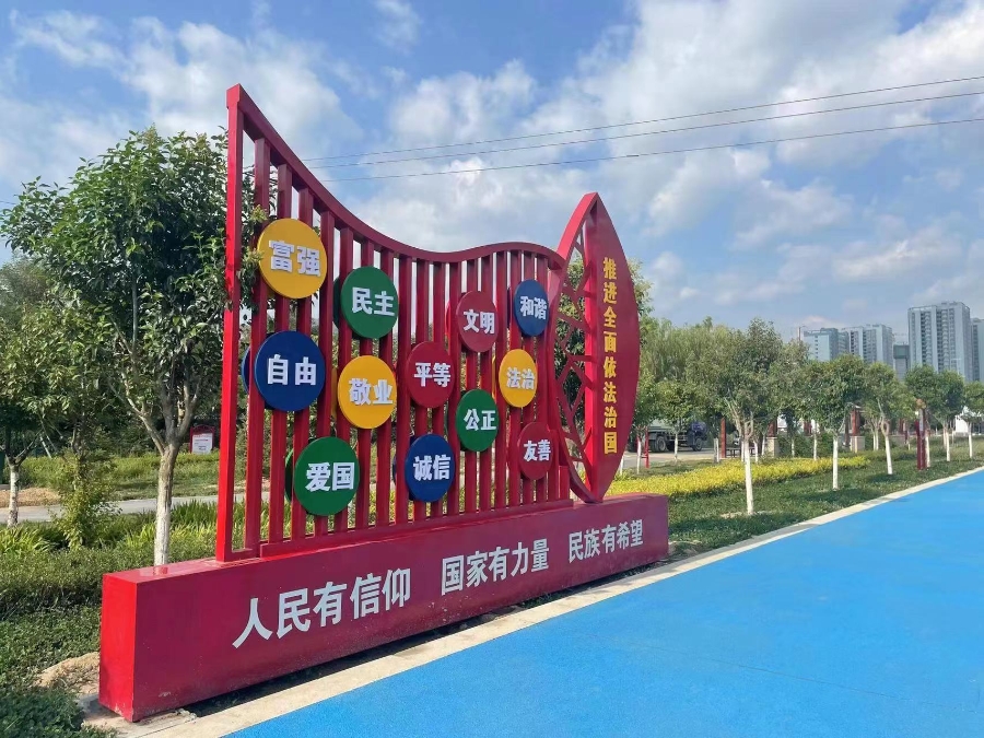 法治文化主题公园在规划建设上遵循“法治·和谐”的设计理念,在公园原有自然景观中融入大量的法治人文元素,通过富有美感的造型、展板、装饰等,为公园注入法治文化生命力,赋予公园全新的普法功能,营造了“抬头见法、驻足学法、心中有法”的浓厚法治氛围。同时,通过春风化雨、润物无声的法治文化熏陶,让群众寓教于学、寓乐而学,养成尊法学法守法用法的良好行为习惯。