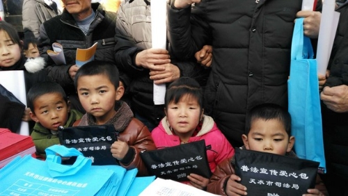 为深入学习宣传贯彻党的十九大精神,充分发挥文化科卫生“三下乡”活动的品牌效应和示范作用。1月19日,天水市文化科技卫生“三下乡”集中示范活动在清水县秦亭镇集中开展。天水市司法局依托此次活动,广泛深入开展了“法律进乡村”活动,用群众喜闻乐见的形式将“法律大餐”送到农民家门口,帮助和引导当地群众尊法学法守法用法,为我市春节期间营造良好的法治环境。