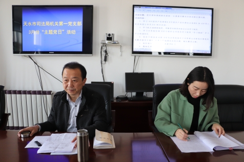 3月20日,天水市司法局机关第一党支部组织开展了3月份“主题党日”活动,活动以“把纪律和规矩挺在前面,认真落实整改市委巡察反馈问题”为主题,支部书记王建民主持活动会,支部全体党员参加了活动。