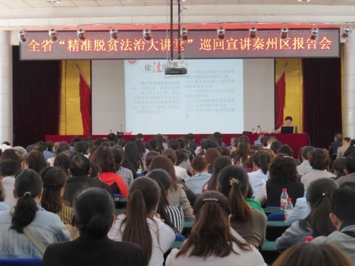 秦州区委、区政府分管领导,各镇、街道主要领导、分管领导、司法所长,区直部门、单位主要领导,各社区书记、街道干部、村(社区)群众代表,秦州区贫困村第一书记共500余人聆听了报告会。