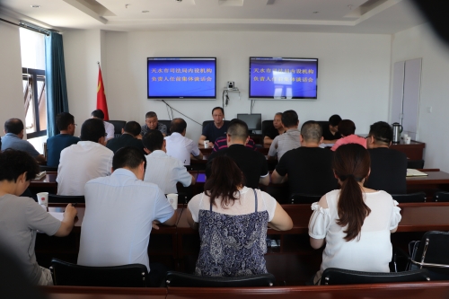 7月25日下午,天水市司法局党组召开市司法局机构改革内设机构负责人任前集体谈话会,局党组书记、局长周全与新调整干部进行集体谈话。局党组成员、新提拔和重新任职、交流任职的科级干部参加会议。