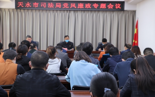 4月30日,天水市司法局召开党风廉政建设工作专题会议。会议宣读了《中共天水市司法局党组2020年党风廉政建设工作安排》,局党组书记、局长周全同志代表局党组与各分管领导、分管领导与分管科室负责人分别签订了《2020年党风廉政建设工作责任书》,周全同志向全体党员干部作了党风廉政专题党课辅导。会议由党组成员、副局长,局直属机关党委书记曹辉同志主持,局党组成员以及全体干部职工50余人参加了会议。