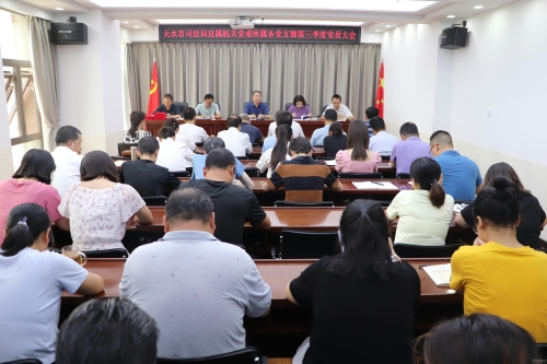 7月31日下午,天水市司法局直属机关党委所属各党支部联合召开党员大会,并开展讲党课活动。局党组成员、副局长、直属机关党委书记曹辉同志主持会议并讲授党课。所属4个党支部全体党员和机关干部群众50余人参加了会议。