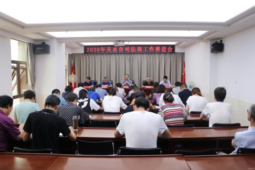 为贯彻落实市委全面深化改革委员会第六次会议、市委政法委员会会议,以及全省司法行政工作推进会议、全省司法行政系统党风廉政建设突出问题专项整治暨作风建设推进会议和全省法治乡村建设暨民主法治示范村“百村创建”工作推进会议精神,回顾总结工作,分析存在的问题,查找工作弱项短板,安排部署下一阶段的工作任务。8月6日,天水市司法局召开2020年工作推进会,局党组书记、局长周全同志出席会议并讲话,局班子成员、机关全体干部职工参加会议。
