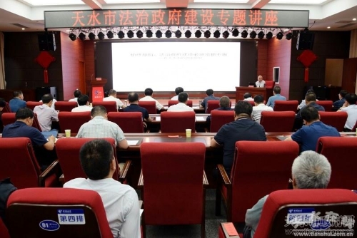 为进一步强化领导干部法治思维和法治观念,不断提升依法行政能力和水平,如期完成中共中央、国务院《法治政府建设实施纲要(2015-2020年)》和省、市实施方案明确的目标任务,全面推进法治政府建设。6月12日,天水市委、市政府举办了2020年度第一期全市领导干部法治专题讲座,邀请省司法厅一级巡视员、兰州大学法学院硕士生导师曾施霖作专题辅导,市委常委景丹主持讲座并讲话。