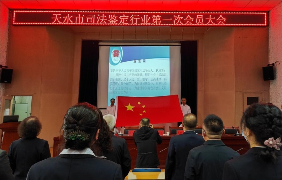会议审议通过了天水市司法鉴定行业协会章程,选举产生了协会第一届理事会及监事,并召开了协会第一届理事会第一次会议,选举产生了会长、副会长。随后,新任协会会长和理事会带领与会全体司法鉴定人面向国旗进行了庄严的执业宣誓。