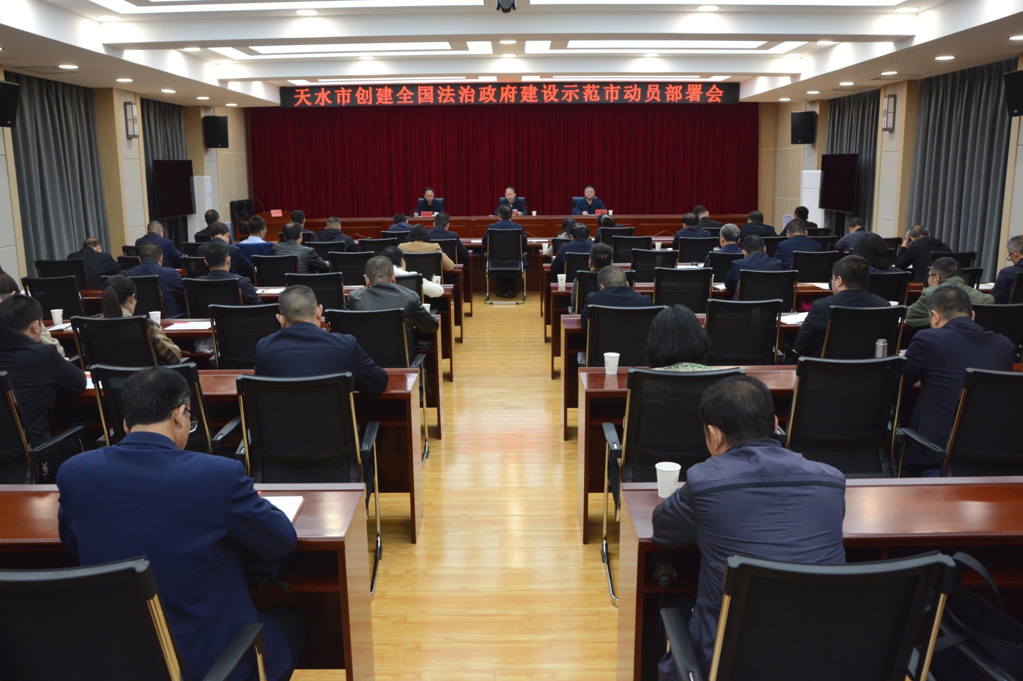 10月18日上午,天水市召开创建全国法治政府建设示范市动员部署会,深入学习贯彻党的二十大精神和习近平法治思想,全面落实法治建设“一规划、两纲要”要求,动员部署开展全国法治政府建设示范市创建活动,在更高水平上深化法治天水建设,为全市经济社会高质量发展提供坚强有力的法治保障。市委常委、政法委书记邵建斌同志出席会议,市政府有关负责同志安排部署创建全国法治政府建设示范市工作。