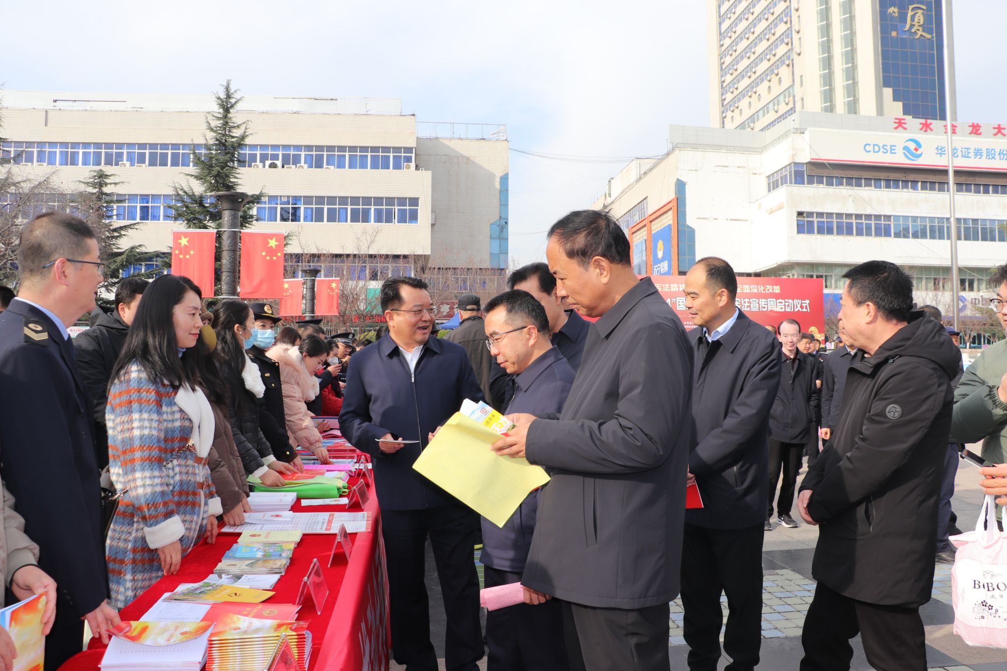 启动仪式结束后,市直和秦州区50多家部门单位开展了集中宣传咨询活动,干部职工和群众代表600余人参加,赠送发放宪法读本、普法宣传资料及宣传品3万余份,展出“强国复兴有我”法治文化作品和宪法法律宣传展板80余块。