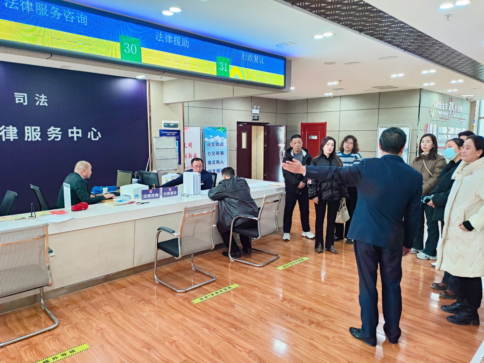 活动中,邀请市区两级人大代表、政协委员、法律服务工作者和部分街道、社区干部群众等28名代表们,分头走进市公证处、端方律师事务所、忠正司法医学鉴定所、市公共法律服务中心、市政府行政复议听证室进行观摩,听取工作人员介绍机构职能、工作流程、服务机制等情况。