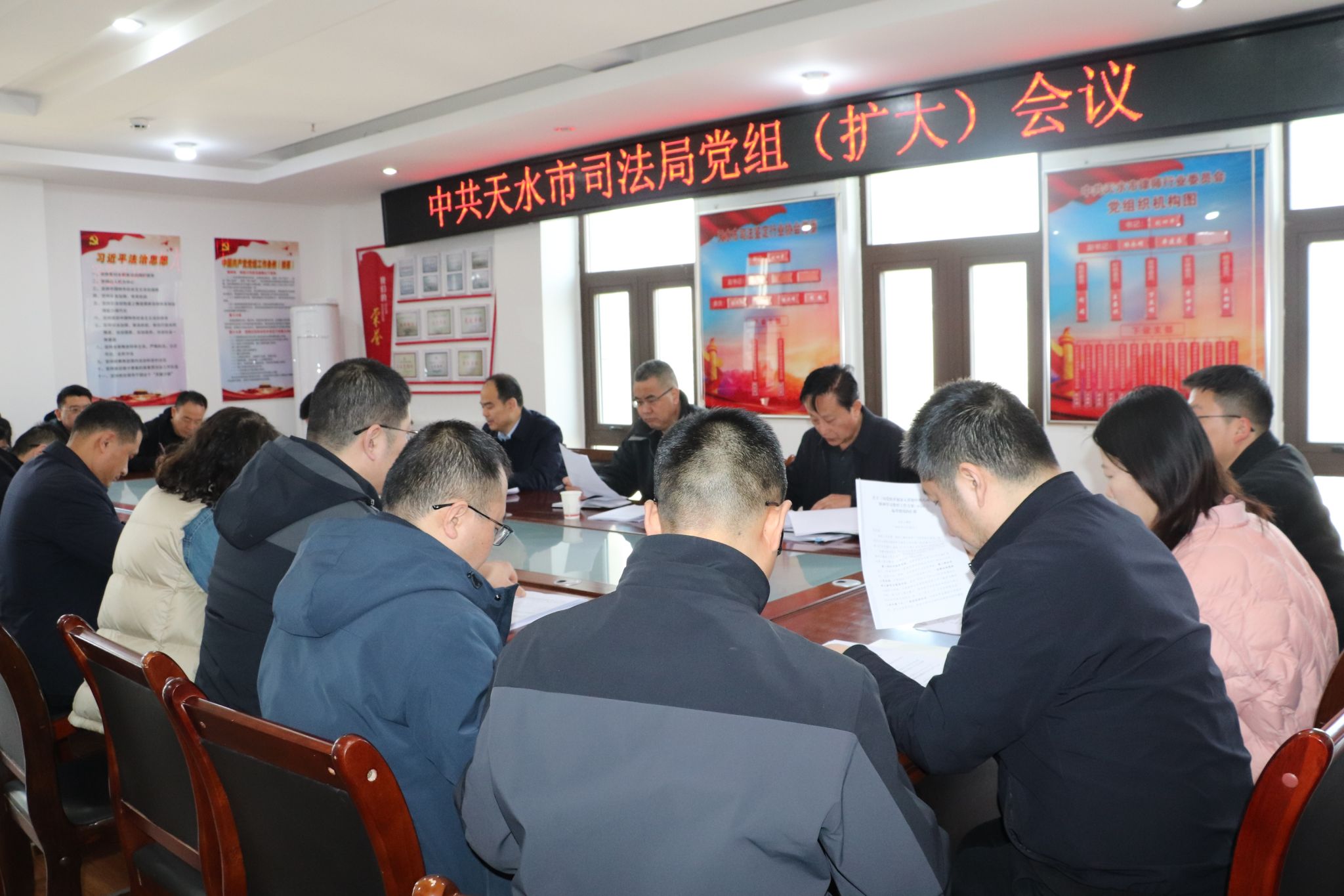 ▲天水市司法局召开党组(扩大)会议安排部署全局学习教育工作