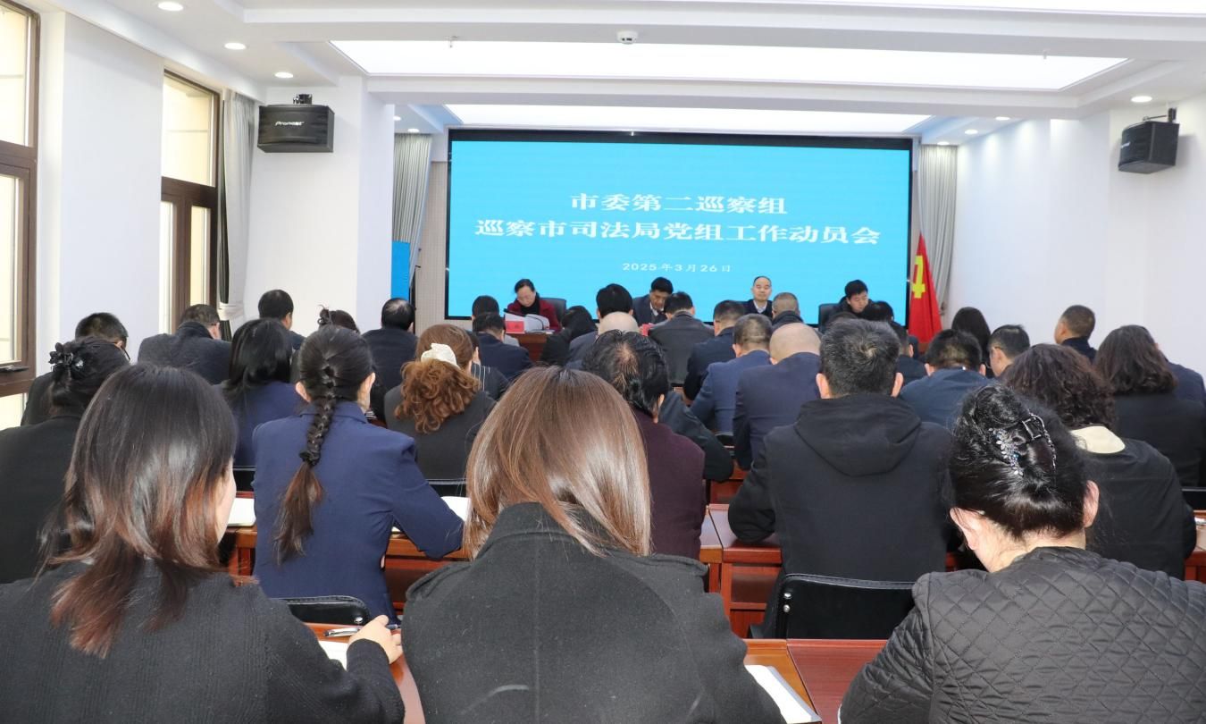 根据八届市委第七轮巡察统一部署,2025年3月26日,市委第二巡察组巡察市司法局党组工作动员会召开。会前,巡察组与被巡察党组织主要负责人召开进驻见面沟通会,通报有关情况。会上,市委第二巡察组组长阎小鹏作动员讲话,就做好巡察工作提出要求,市司法局党组书记、局长李万举主持会议并作表态讲话。市委第二巡察组全体成员,市纪委监委派驻市委政法委纪检监察组副组长、市司法局党组领导班子成员、下属单位负责人、职级调研员,局机关、下属单位科级干部、市律师行业协会会长和市司法鉴定行业协会会长参加会议。