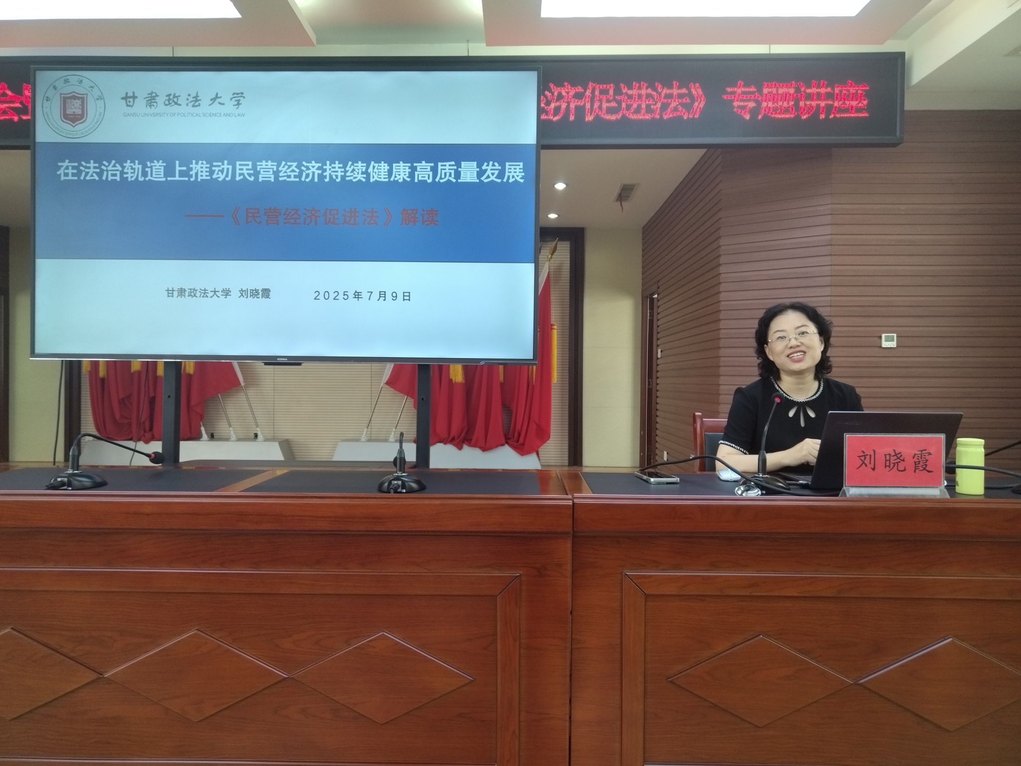为深入学习贯彻习近平法治思想,认真贯彻落实习近平总书记在民营企业座谈会上的重要讲话精神,全面学习宣传贯彻实施民营经济促进法,7月9日,天水市在秦州区委礼堂举办全省“百场法治大宣讲”秦州区报告会暨全市《中华人民共和国民营经济促进法》专题讲座,邀请全省“八五”普法讲师团成员、甘肃政法大学刘晓霞教授作专题授课。