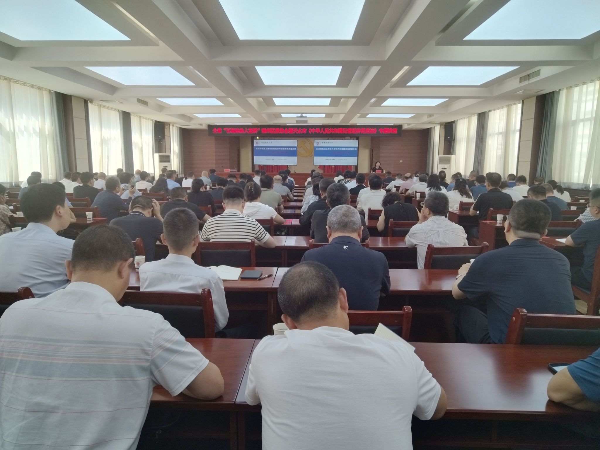 刘晓霞教授以“在法治轨道上推动民营经济持续健康高质量发展”为题,深入剖析了民营经济促进法的立法背景、基本原则和主要思路,重点解读了民营经济促进法的主要内容和制度亮点,并对全面准确贯彻实施民营经济促进法提出了很好的建议,讲座内容既有理论高度,又贴合天水经济发展实际,具有很强的针对性和指导性,特别是结合典型案例,深刻剖析了民营经济促进法的核心价值和对民营企业权益保障、市场公平竞争、稳预期增信心等方面的创新突破,为民营企业增强发展信心、用好惠企政策、依法合规经营、破解发展难题注入了强劲动能。
