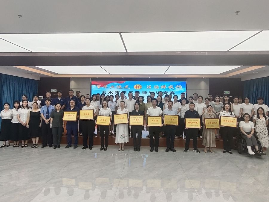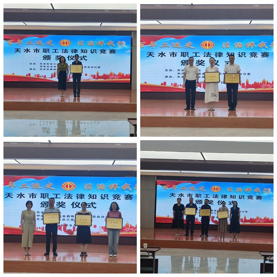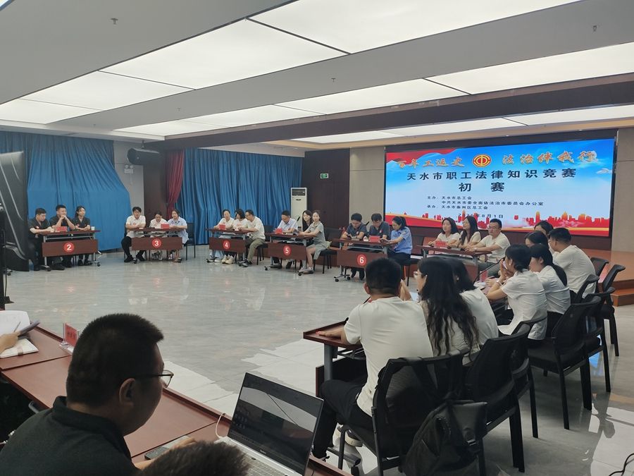 为深入贯彻习近平法治思想,提升全市工会干部与职工群众的法治素养和依法履职能力,构建和谐劳动关系,营造全社会尊法、学法、守法、用法的良好氛围,8月1日,由市委依法治市办联合市总工会主办、秦州区总工会承办的 “百年工运史 法治伴我行”天水市职工法律知识竞赛成功举办。来自全市各单位、各县区、各企业的30支队伍120名参赛队员汇聚赛场,展开激烈角逐。