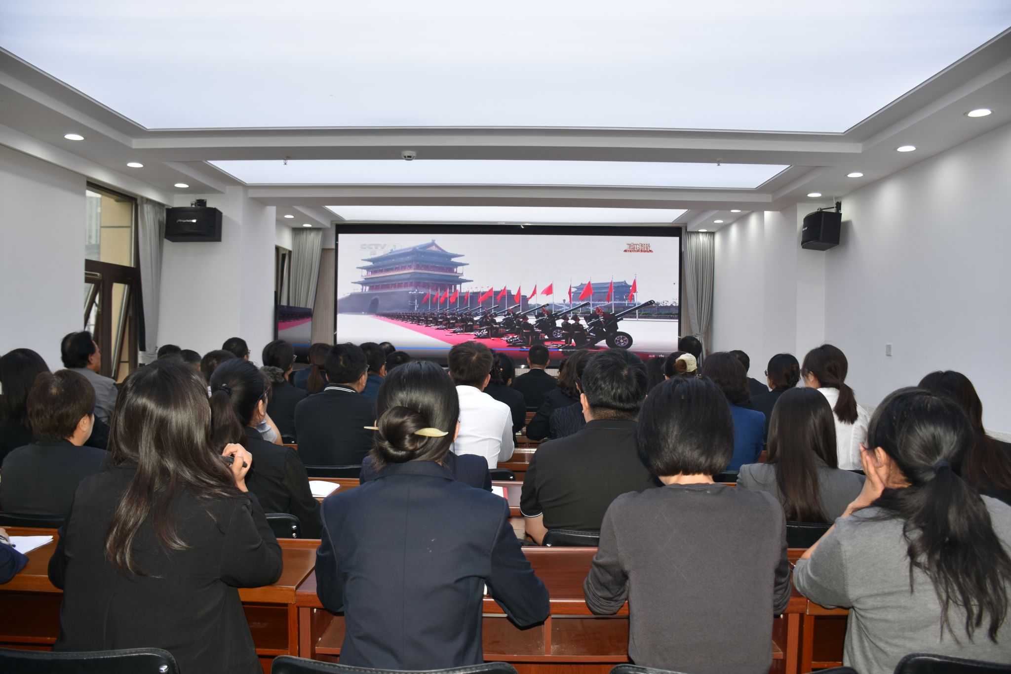 9月3日上午,天水市司法局组织全体党员干部集中观看纪念中国人民抗日战争暨世界反法西斯战争胜利80周年大会及阅兵仪式。9时整,纪念大会开始。在热烈的掌声中,习近平发表重要讲话。9时15分,阅兵仪式开始,标兵就位,军乐团吹响阅兵式号角。在雄壮的军乐声中,习近平乘红旗检阅车,沿着宽阔的长安街,依次检阅。受阅部队军容严整、意气风发,铁甲战车整齐列阵、威风凛凛。这是人民军队奋进建军百年的崭新亮相,这是中华民族捍卫世界和平的坚定宣示。