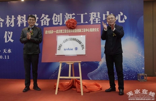 11月26日,星火机床—武汉理工复合材料设备创新工程中心成立揭牌仪式在天水宾馆举行。天水市委书记王锐、武汉理工大学副校长吴超仲共同为中心揭牌。