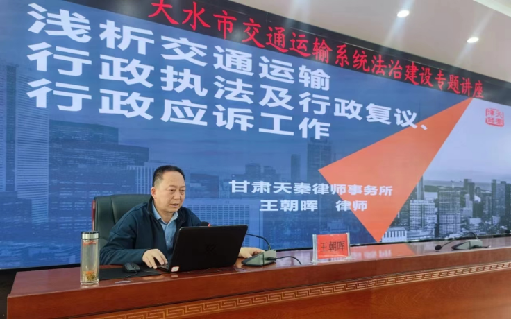 图五 天秦律师事务所主任 王朝晖宣讲《浅析交通运输行政执法应诉新亮点、新焦点》