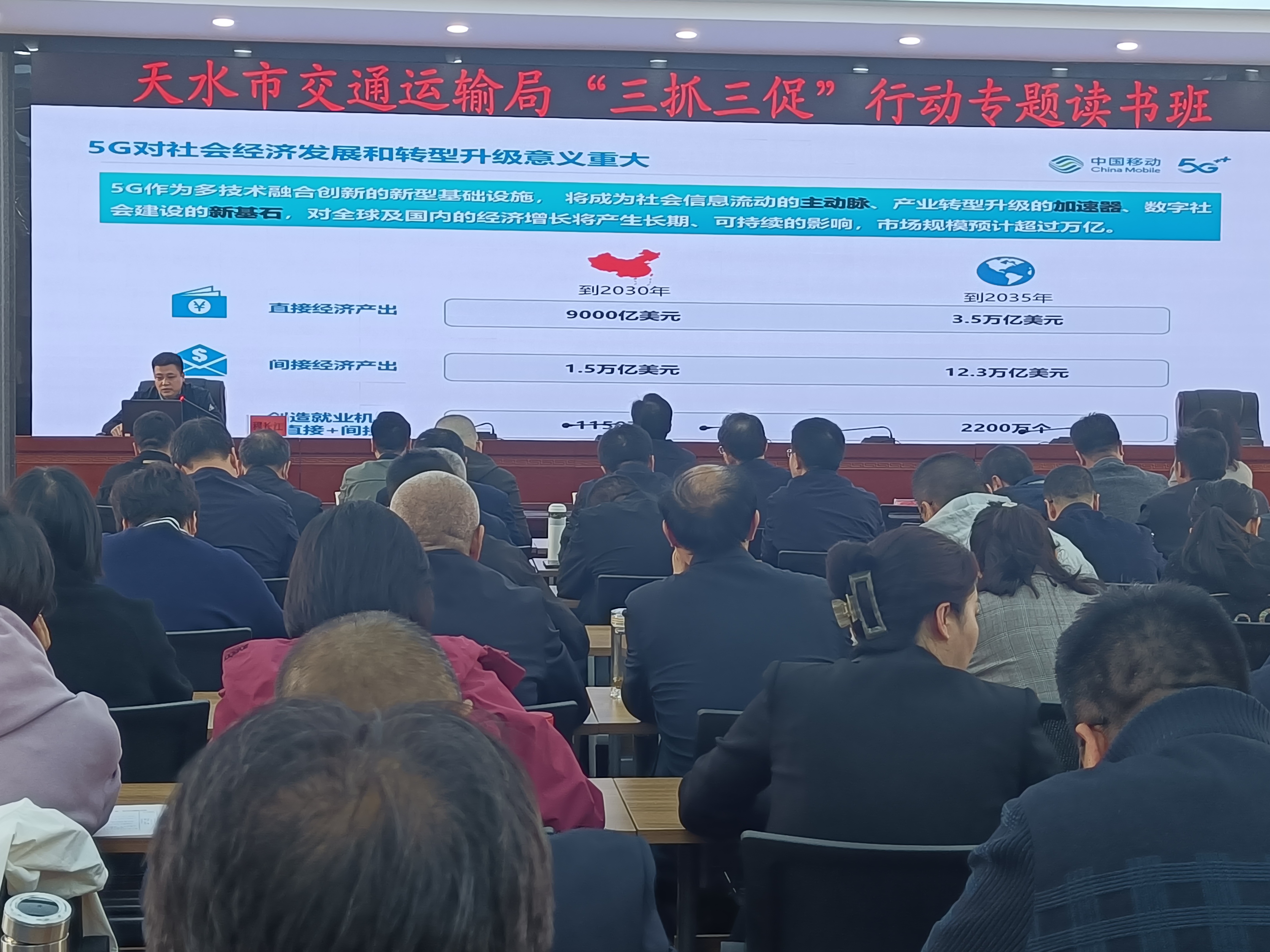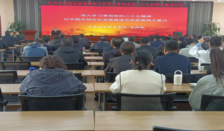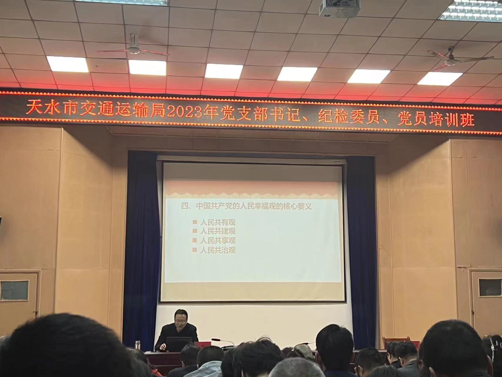 培训班特邀天水师范学院马克思主义学院副院长、教授余明远、中国移动上海产业研究院智慧交通行业高级解决方案专家、省级技术专家、高级工程师穆长江、市委党校教授赵具安、天秦律师事务所主任王朝晖、市委党校讲师侯强强、市交通运输综合行政执法队队长李少龙六位行业专家围绕“新时代中国共产党的人民幸福观”、“5G技术、区块链、大数据等新型技术赋能交通行业信息化发展”、“加快构建新发展格局、着力推动高质量发展”、“浅析交通运输行政执法及行政应诉新亮点、新焦点”、“深入学习贯彻党的二十大精神,为全面建设社会主义现代化国家团结奋斗”、“交通运输行政执法实务培训”六类培训内容进行专题宣讲。