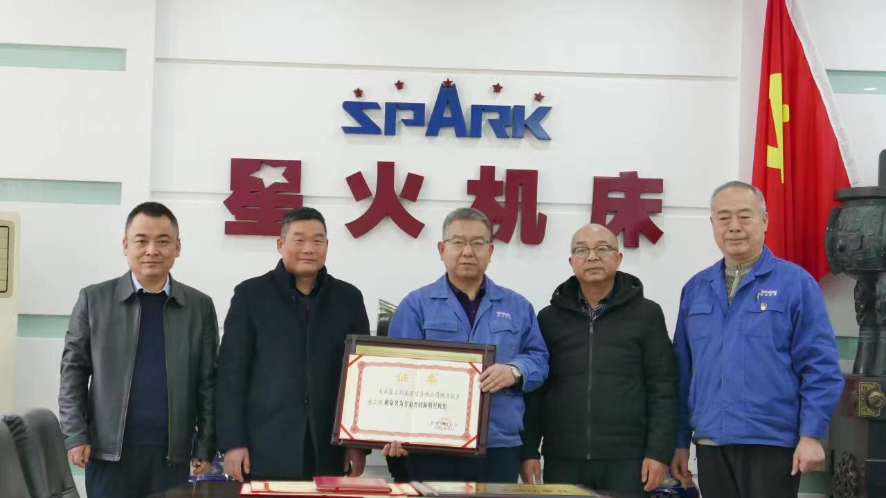 星火机床有限责任公司铸造技术施工组被省总工会命名为2022年“甘肃省创新型明星班组”,张宝生创新工作室被省总工会命名为2022年“甘肃省示范性劳模创新工作室”;天水星火有限责任公司“精密数控机床研发部”被甘肃省职工技术协会、甘肃省工人发明家职工发明之星优秀创新型团队评选命名表彰工作领导小组命名为甘肃省“互助保障杯”第二届“优秀创新型团队”。3月3日,天水市总工会党组成员、经审会主任何付忠,市总工会办公室主任、经济工作部部长赵建业代表市总工会为星火机床公司多个集体授牌并颁发荣誉证书。