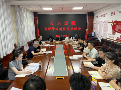 为深入贯彻落实习近平法治思想,认真落实市政府国资委合规管理工作要求,8月5日,天水国投召开合规管理建设年活动启动会。党支部书记、董事长姚海清出席会议并讲话,副总经理杨海军、财务总监刘燕及全体员工参加会议。