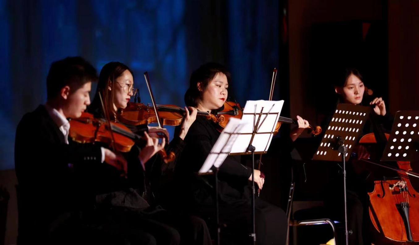 本场音乐会由北京菲尔蒙乐团(北京电影乐团)倾情演出,其中包括小提琴演奏员陈宇轩、高宣,中提琴演奏员肖雪,大提琴演奏员王潇璇,钢琴演奏员骆宇杰,演员们凭借精湛的技艺和过硬的专业功底,为现场观众献上了一场新春艺术盛宴。