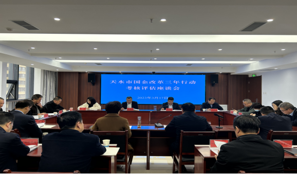 近日,省政府国资委考核评估组对天水市国企改革三年行动重点任务落实情况进行总体考核评估。考核组通过工作汇报、座谈交流、查阅资料、延伸到市属国有企业现场评估等环节,对我市国企改革三年行动进行全方位考核评估。