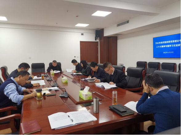 11月17日,市政府国资委党委理论学习中心组召开学习党的二十大精神专题研讨会,会议传达学习了习近平总书记在中共中央政治局第一次集体学习时的重要讲话精神以及习近平总书记在瞻仰延安革命纪念地时的重要讲话精神等内容,班子成员围绕学习党的二十大精神作了研讨发言。