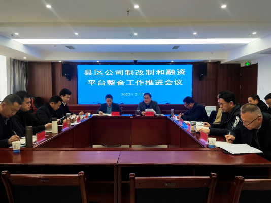 为深入贯彻落实国企改革三年行动有关要求,加快推进县区公司制改革收尾和融资平台整合重组步伐,2月23日,市政府国资委召开了县区公司制改革和融资平台整合推进工作会议。通报了县区公司制改革和融资平台整合重组工作进展情况,传达省、市相关会议精神,对两项工作做出具体安排部署。市政府国资委、各县区人民政府、经开区管委会分管领导及国资监管机构主要负责人参加了会议。