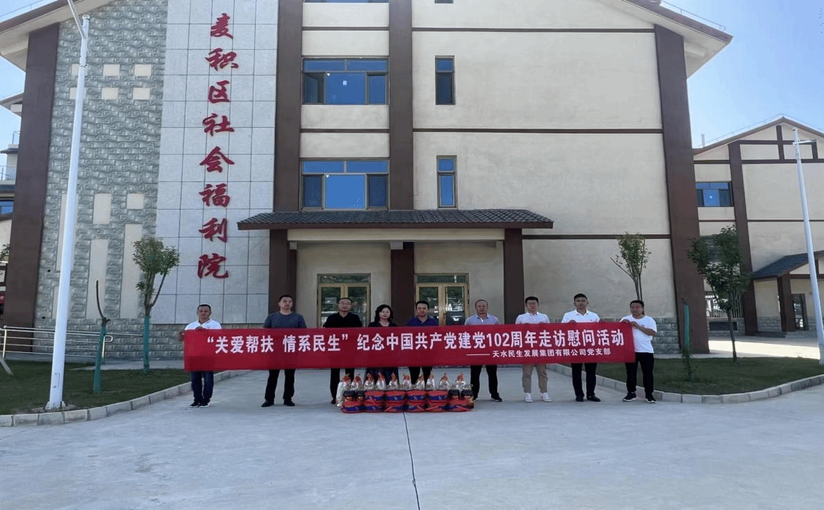 在“七一”建党节来临之际,6月29日,天水民生发展集团有限公司党支部组织党员职工到天水市麦积区社会福利院开展“关爱帮扶、情系民生”庆祝中国共产党建党102周年走访慰问活动,为福利院救助人员送去关心关爱,让他们感受到党的温暖和关怀,共同迎接党的生日。