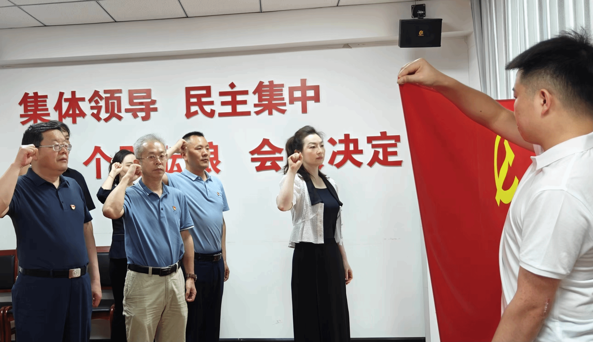 随后,与会全体党员面对鲜红的党旗,高举右手,重温了入党誓词。铿锵的誓词强烈震撼着在场的每一位党员,也让大家再次体会到作为一名共产党员的责任感和使命感,坚定了用实际行动践行誓言的决心。