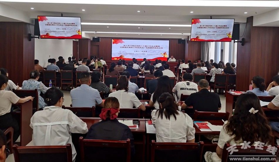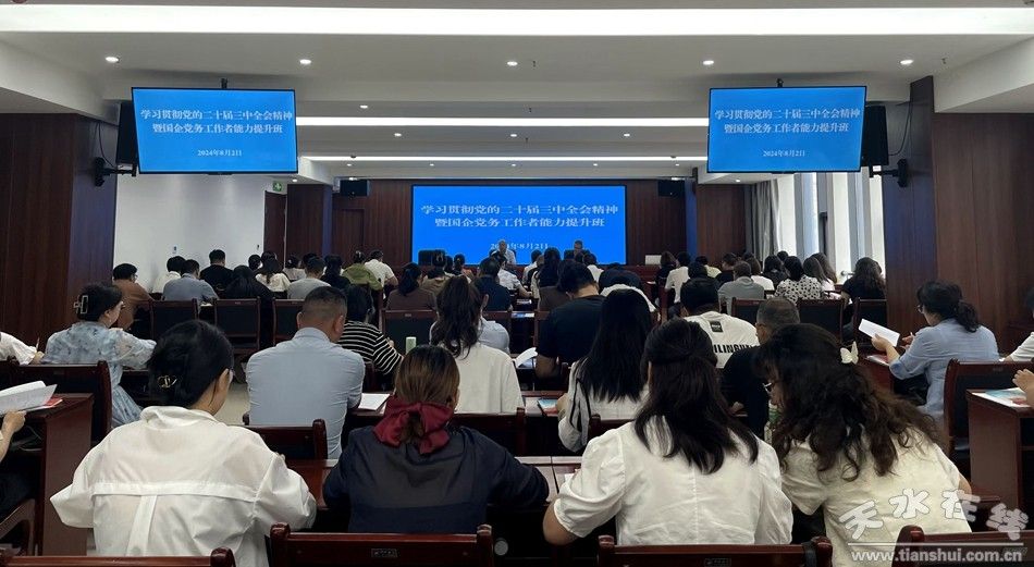 8月2日,天水市国资国企系统学习贯彻党的二十届三中全会精神暨国有企业党务工作者能力提升班开班,市政府国资委副主任、市企业工委副书记江爱民同志出席开班仪式并作动员讲话,驻市有关中央企业、省属企业及市属国有企业党办主任和党务干部共计100余人参加培训。