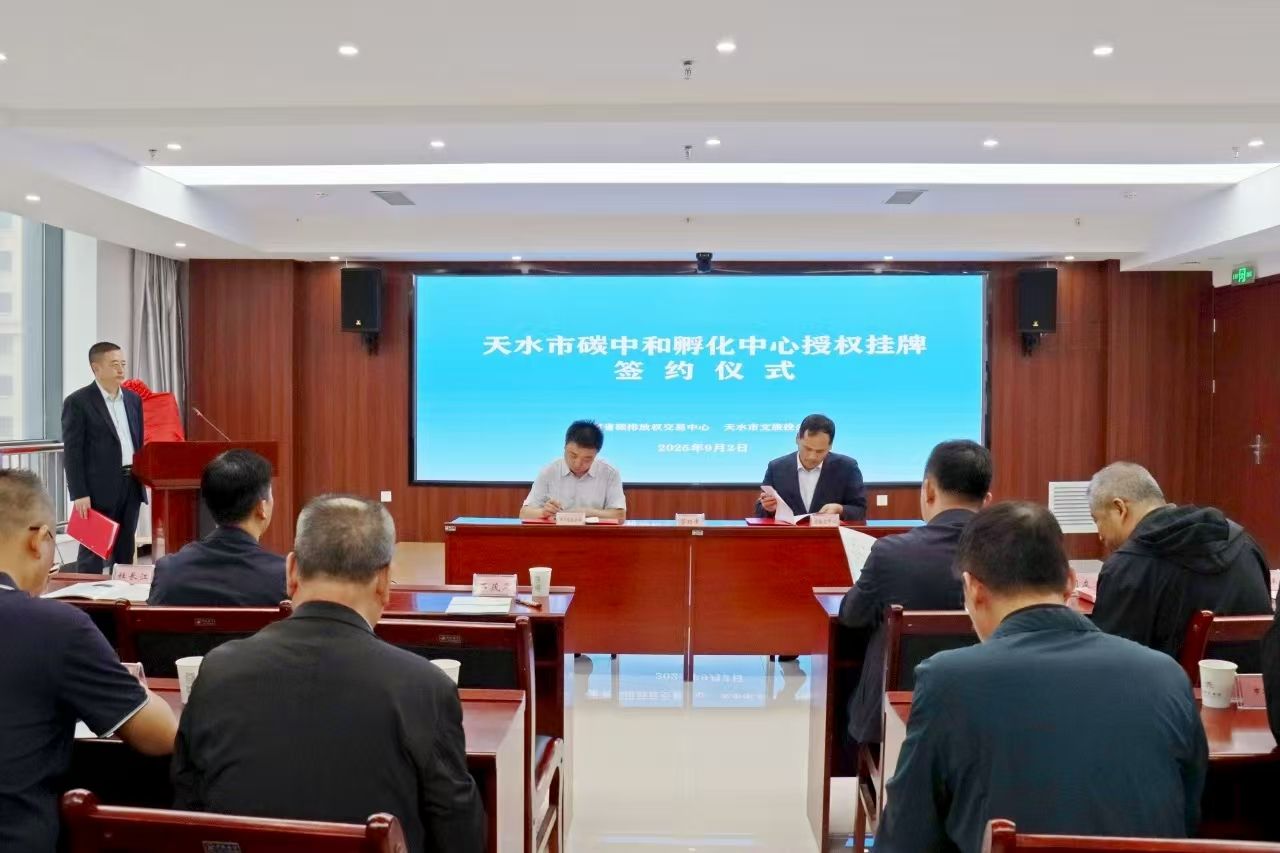 9月2日,“天水市碳中和孵化中心”签约暨揭牌仪式在天水市成功举行。该中心由省碳排放交易中心与天水市文旅投公司共同建设运营,是甘肃省内首个聚焦碳中和领域的专业孵化平台。甘肃科技集团副总经理周友三,天水市政府国资委党委书记、主任、市企业工委书记王志军,天水市相关部门及重点企业负责人等出席仪式。
