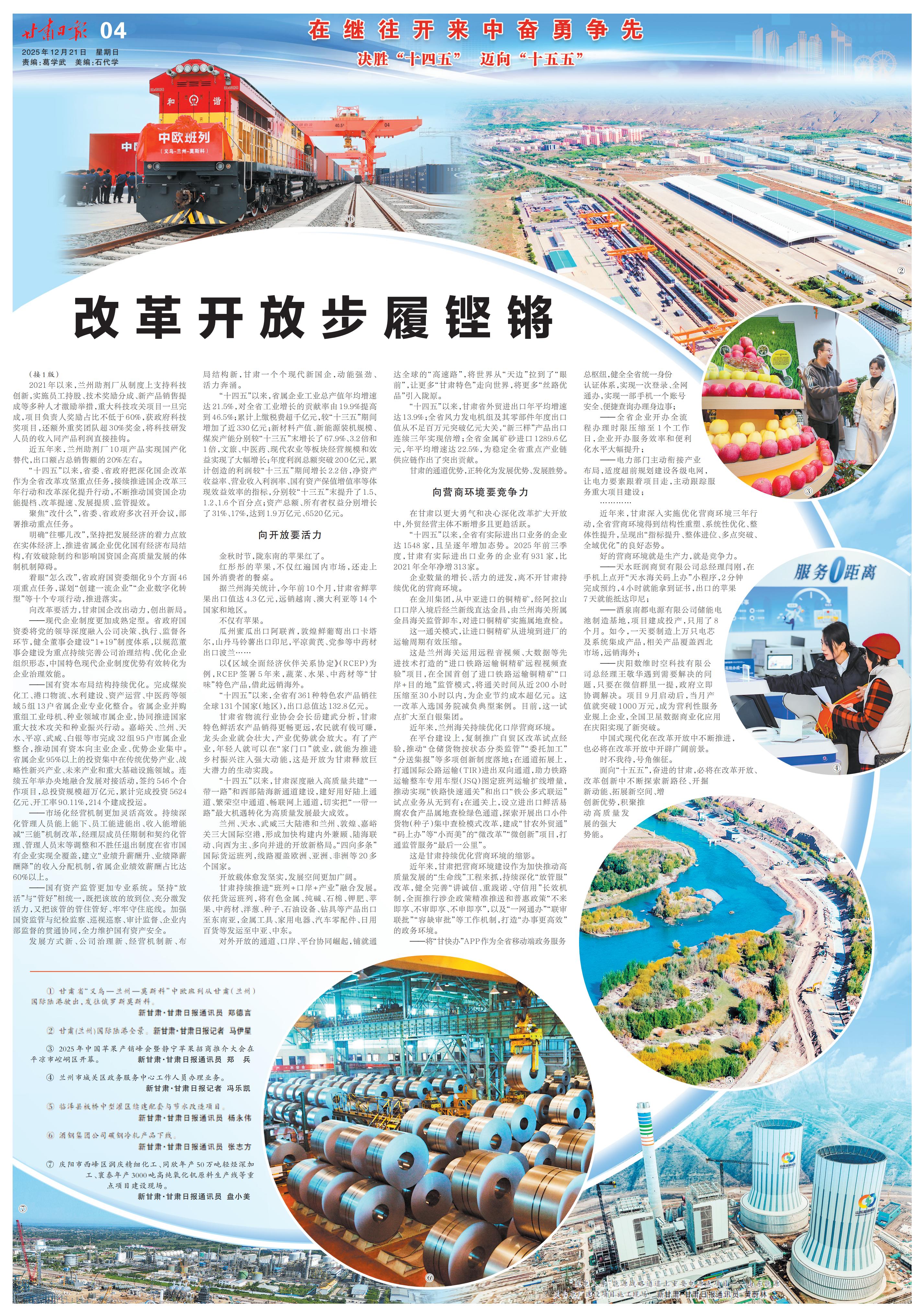 “十四五”以来,甘肃以更大勇气和决心深化改革扩大开放,加快塑造新动能新优势,为高质量发展注入新动力。