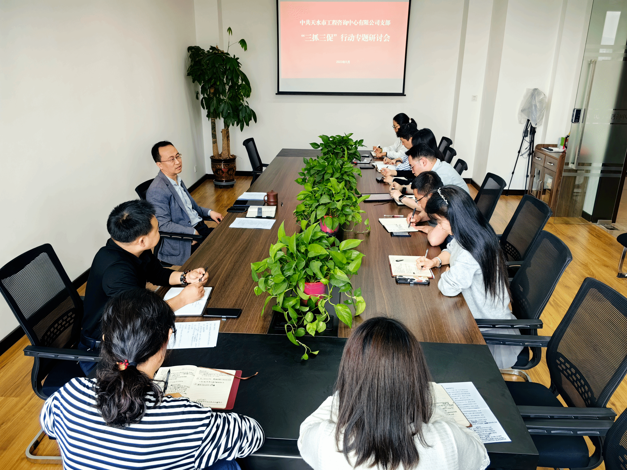 自“三抓三促”行动开展以来,天水市工程咨询中心有限公司紧盯年度经营目标,坚持问题导向,紧紧围绕党的基层组织建设、改革发展、市场拓展、高质量发展等重点领域扎实开展工作,通过精细化管理,不断完善和健全各项制度和工作流程,使公司的整体水平进一步提高。