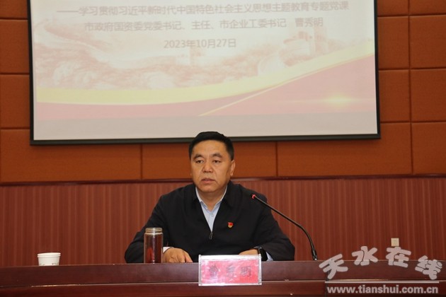 曹秀明同志通过介绍国有企业的发展历程以及党的十八大以来习近平总书记针对国有企业发表的一系列重要讲话、作出的一系列重要指示批示、部署的一系列重大战略举措、国资国企改革发展和党的建设工作发生的重大变化,强调全体党员干部要深刻认识国资国企是党和国家最可信赖的依靠力量。他系统阐述了中国国有企业改革的五个阶段以及国企改革三年行动以来天水市属国有企业的发展状况、党的二十大报告对国有企业的新要求,指出要以深入开展主题教育为契机,聚焦国资国企中心工作,精心组织,压茬推进,加快解决一批制约国有企业改革的深层次矛盾和问题,全面推进改革任务落实落地,推动解决一批企业发展所需、民心所向的问题,形成一批切合实际、务实管用的政策措施,以主题教育成效推动国资国企高质量发展。