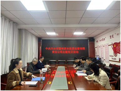 2021年12月6日下午,中共天水市国有资本投资运营有限责任公司支部委员会开展了12月份主题党日活动。活动由支部书记、董事长姚海清主持,副总经理杨海军、财务总监刘燕及全体党员参加。