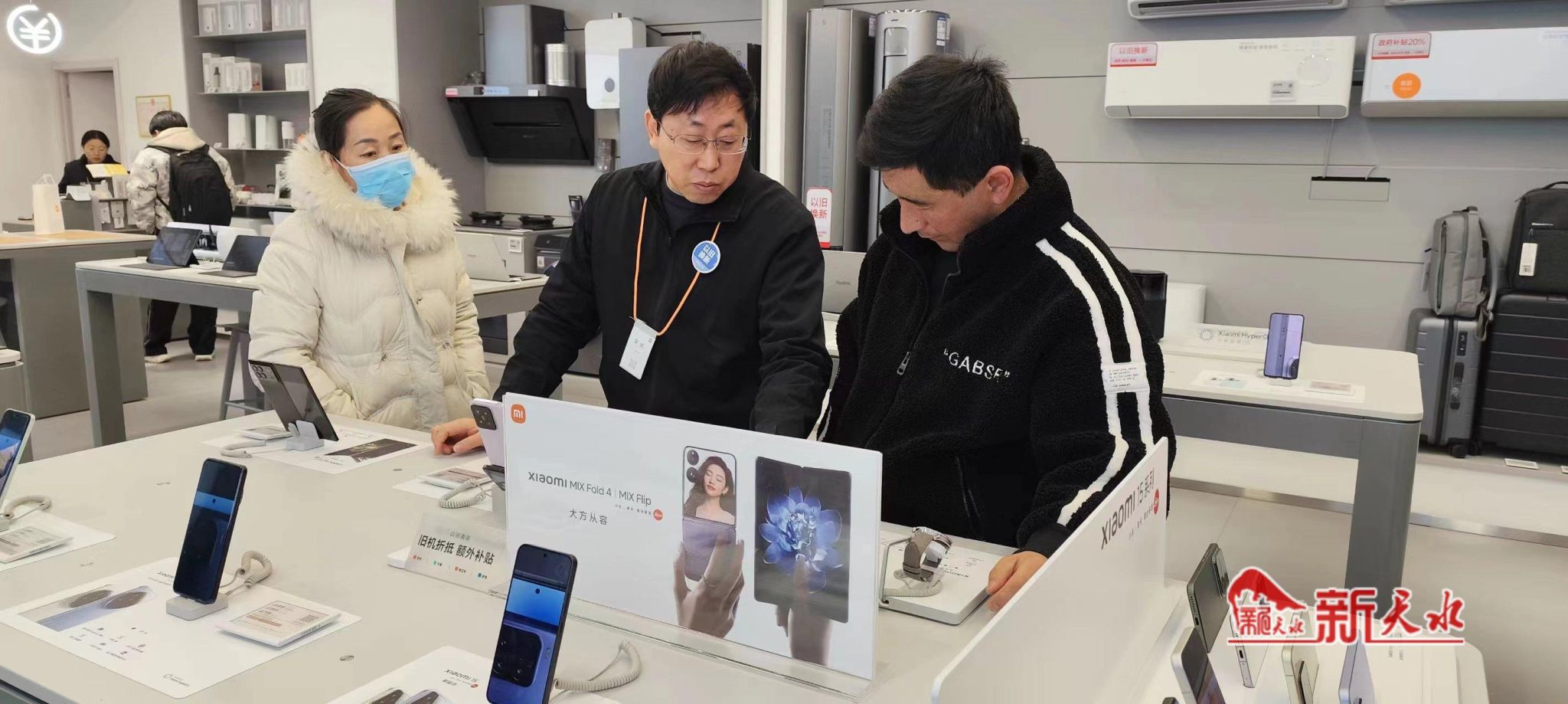 汪师傅和妻子在导购员的陪伴下,详细咨询小米各种型号手机的性能和价格。“老婆的手机已经用了好几年了,过年的时候听说买手机有补贴,今天过来咨询一下补贴政策。”汪师傅说,“刚刚听了导购的介绍,一部手机最高能补500元,觉得很划算,现在就要选一款经济实惠的买下来。”