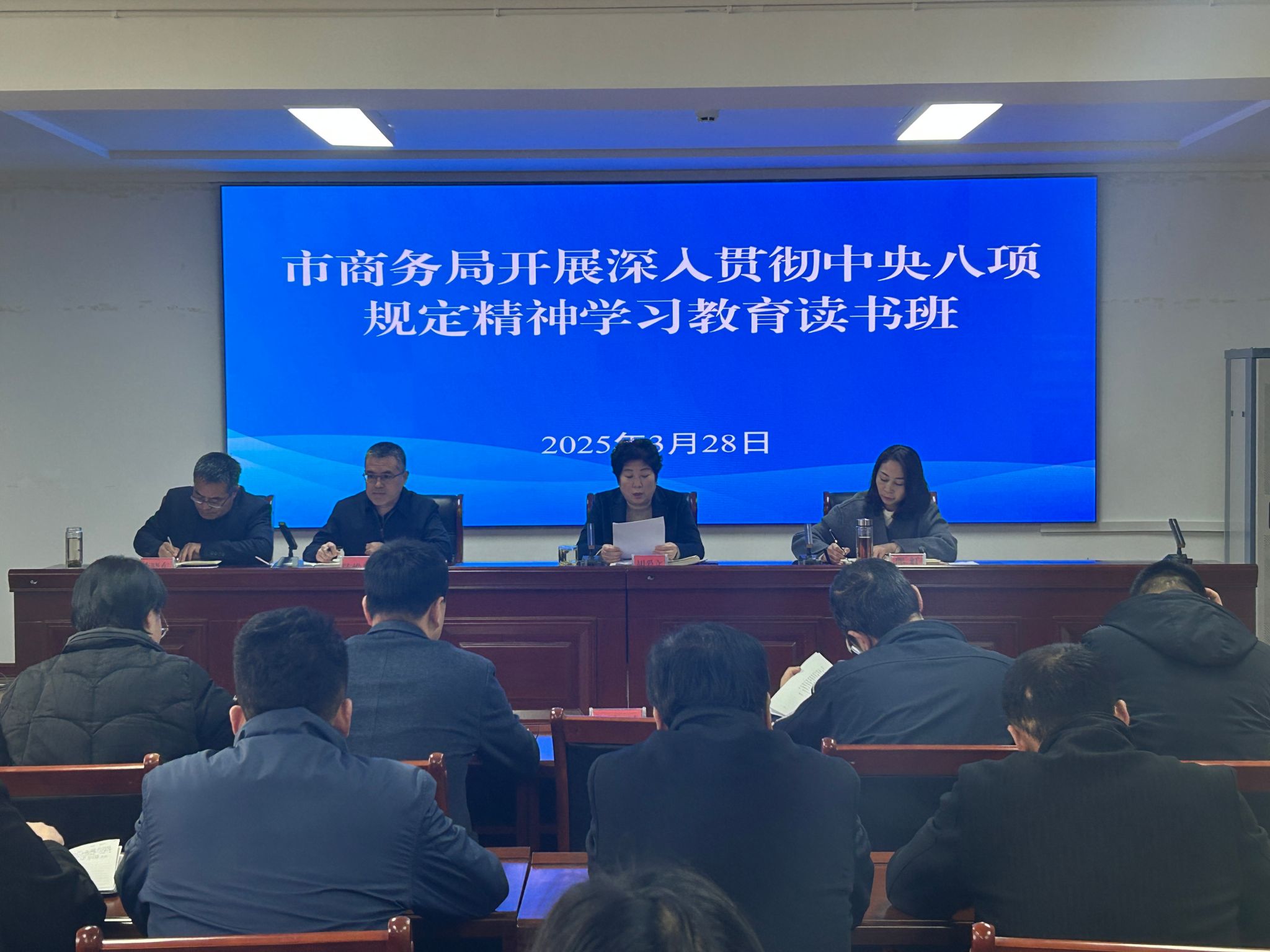 按照开展深入贯彻中央八项规定精神学习教育总体安排,市商务局3月28日下午举行读书班第一次集中学习,认真学习《十八届中央政治局关于改进工作作风、密切联系群众的八项规定》《中共中央政治局贯彻落实中央八项规定实施细则》和《深入贯彻中央八项规定精神学习教育有关问题答复(一)》《关于防范和制止借深入贯彻中央八项规定精神学习教育搞不当营商活动的通知》。局党组书记、局长主持并讲话。