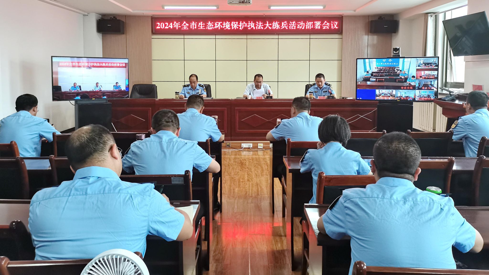 6月27日下午,市生态环境局组织召开全市生态环境保护执法大练兵活动部署会,会议以视频的形式召开到县区,市、县生态环境保护综合行政执法队执法人员共计120余人参加了会议。