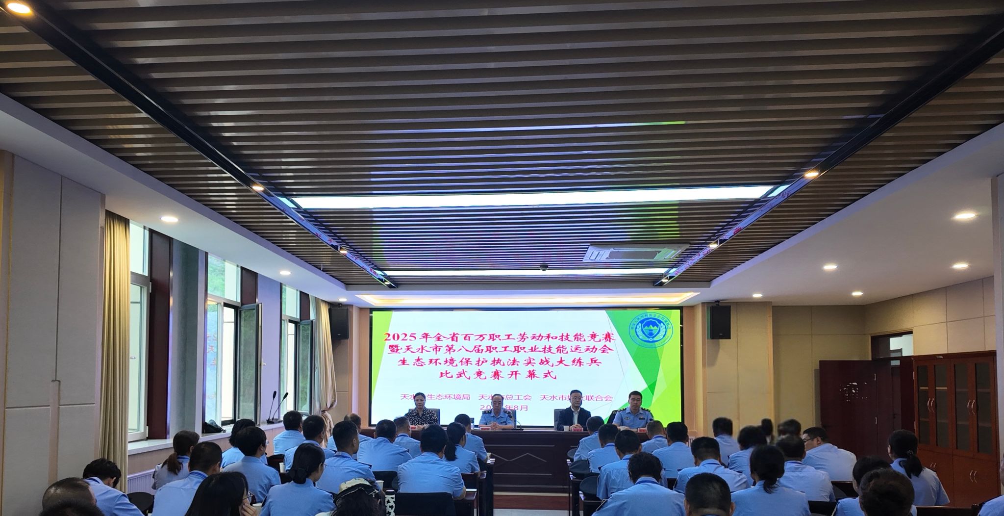 为检验各县区执法实战大练兵成效,推动全市生态环境执法队伍能力素质巩固年活动深入开展,8月28日至29日,天水市生态环境局联合天水市总工会、天水市妇女联合会举办2025年全省百万职工劳动和技能竞赛暨天水市第八届职工职业技能运动会生态环境保护执法实战大练兵比武竞赛活动。