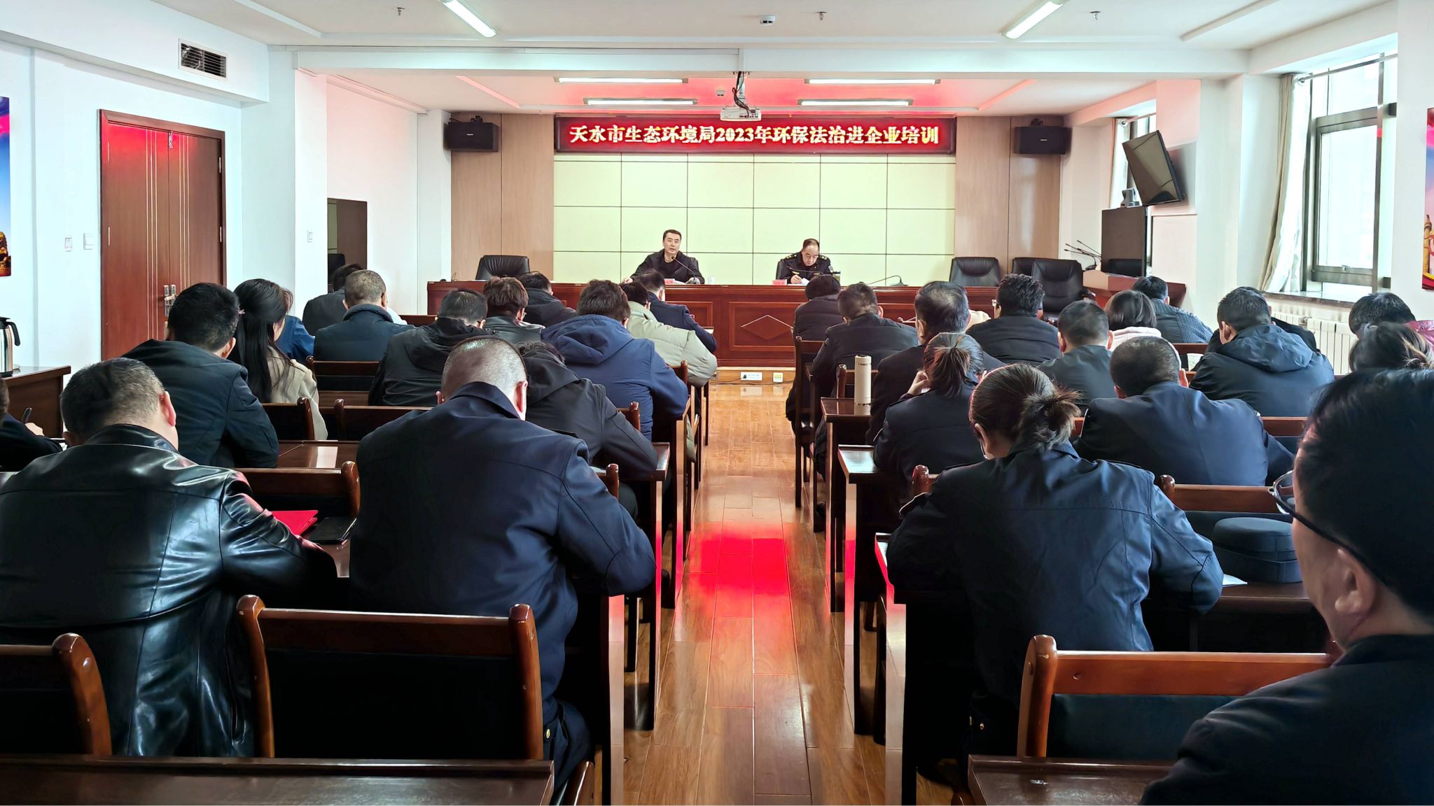 11月15日,天水市生态环境局举办2023年环保法治进企业帮扶培训活动,全市30余家环境重点监管企业负责人和市县执法人员参加培训。