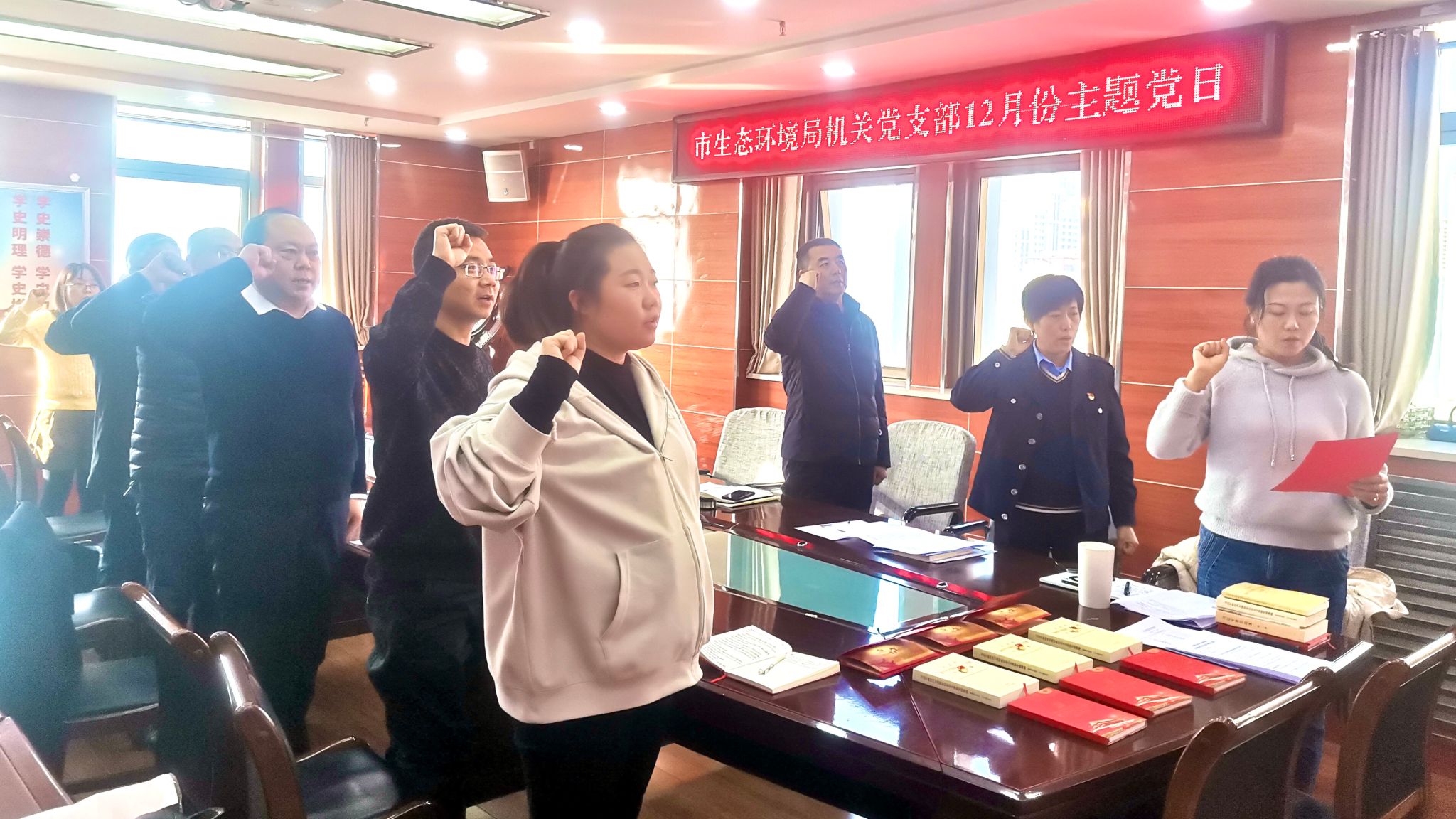 12月8日上午,天水市生态环境局机关党支部开展12月份主题党日活动,集中学习习近平总书记重要讲话精神及理论文章和《习近平新时代中国特色社会主义思想专题摘编》《习近平新时代中国特色社会主义思想学习纲要》(2023版)等主题教育书目,并开展为党员过政治生日、重温入党誓词、分享入党初心感言等活动。