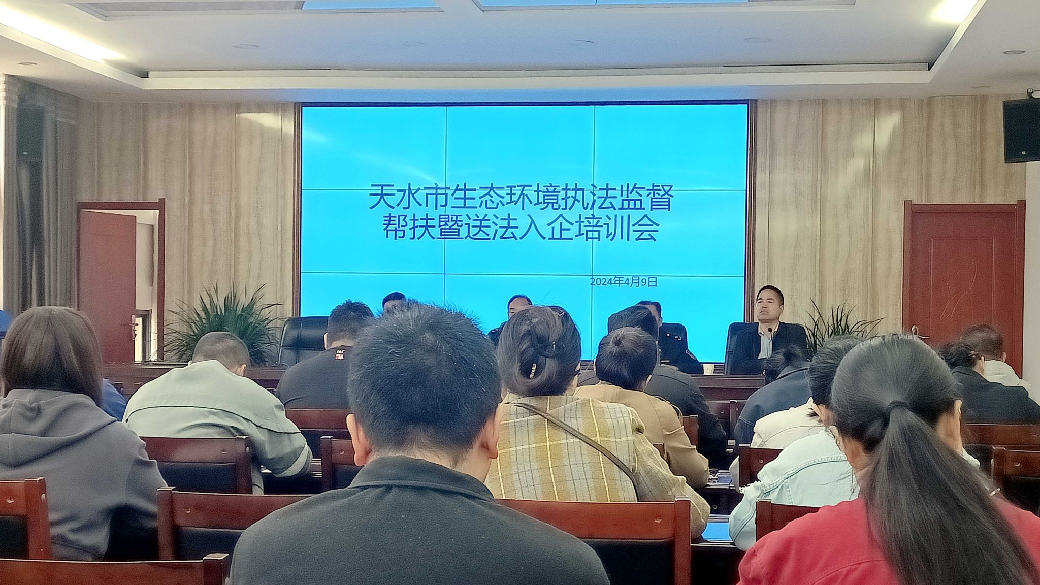 4月9日,召开天水市生态环境执法监督帮扶暨送法入企培训会,组织天水市经济技术开发区40余家重点企业参加。制定印发《关于开展企业生态环境问题自查自纠的通知》,围绕环境影响评价、排污许可、突发环境事件应急、污染防治措施落实、环保设施安全评估、企业生态环保主体责任落实等方面指导企业开展自查,及时整改生态环境问题。向企业宣传解读了习近平生态文明思想及相关环保制度,详细讲解了建设项目环评制度及“三同时”制度、排污许可管理制度、生态环境监测制度企业落实要点,与企业面对面交流,现场进行答疑解惑,并积极协调解决企业遇到的困难和问题。