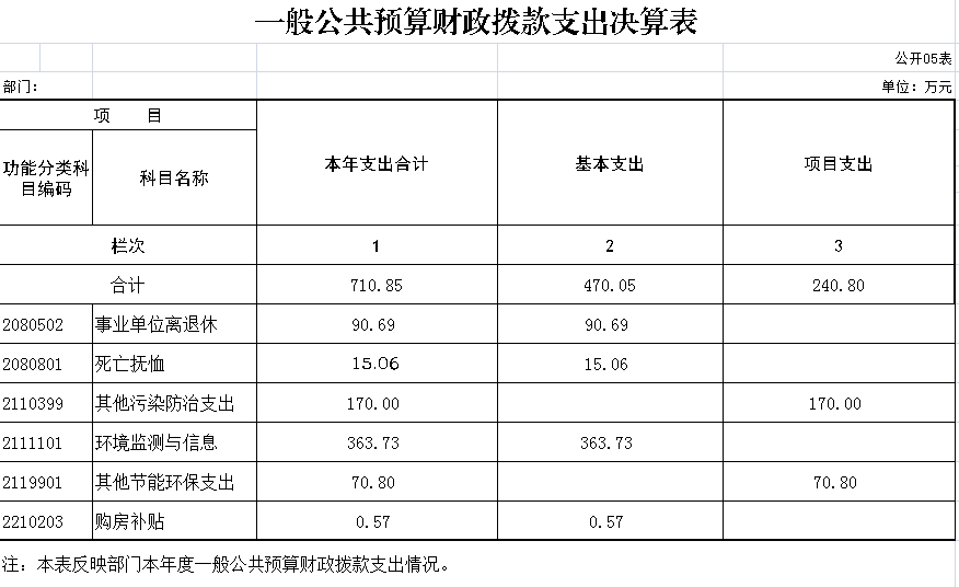 2017年度,天水市环境监测站支出为710.85万元。其中: