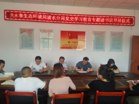 会上宣读了《天水市生态环境局清水分局党史学习教育专题读书班实施方案》,县委党史学习教育第二巡回指导组组长妥迎禄做了讲话,开展了理论考试和专题学习。